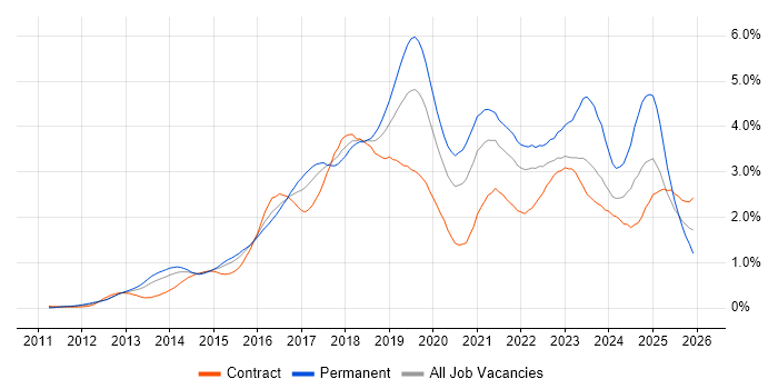 The table below provides summary statistics and contractor rates for jobs advertised in Berkshire requiring Jenkins skills. It covers contract job vacancies from the 6 months leading up to 13 January 2026, with comparisons to the same periods in the previous two years.