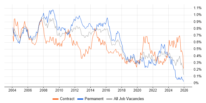 Historical trend showing the proportion of contract IT job postings citing Replication relative to all contract IT jobs advertised in Central London.