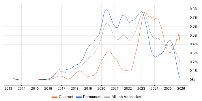 Historical trend showing the proportion of contract IT job postings featuring 'Site Reliability Engineer' in the job title relative to all contract IT jobs advertised in the City of London.