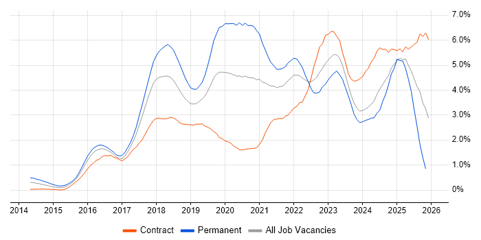 The table below provides summary statistics and contractor rates for jobs advertised in Glasgow requiring Docker skills. It covers contract job vacancies from the 6 months leading up to 28 December 2025, with comparisons to the same periods in the previous two years.