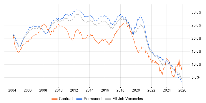 | As % of all contract jobs in Surrey |