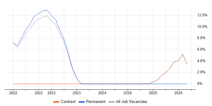 Historical trend showing the proportion of contract IT job postings citing Inclusion and Diversity relative to all contract IT jobs advertised in Twickenham.