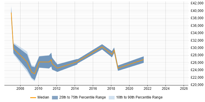 Salary distribution trend for jobs in Exeter citing Content Management.