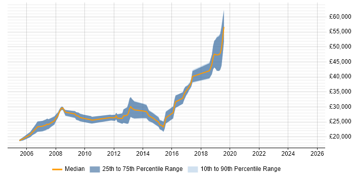Salary distribution trend for jobs in Exeter citing Photoshop.