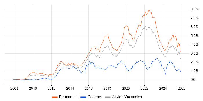| Permanent jobs citing SaaS | 95 | 100 | 77 |