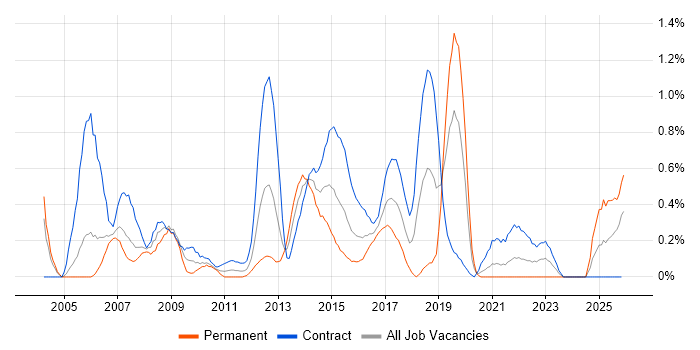 Historical trend showing the proportion of permanent IT job postings featuring 'Incident Manager' in the job title relative to all permanent IT jobs advertised in Milton Keynes.