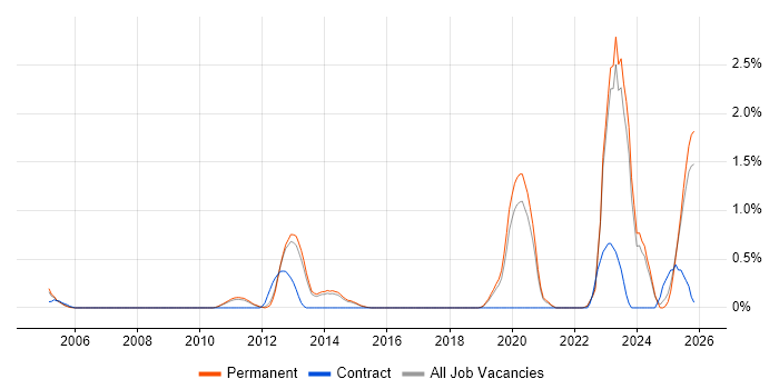 The table below provides summary statistics and salary benchmarking for jobs advertised in North Yorkshire requiring Mac OS skills. It covers permanent job vacancies from the 6 months leading up to 29 December 2025, with comparisons to the same periods in the previous two years.