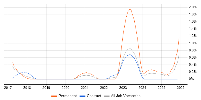 The table below provides summary statistics and salary benchmarking for jobs advertised in Portsmouth requiring Azure Data Factory skills. It covers permanent job vacancies from the 6 months leading up to 30 December 2025, with comparisons to the same periods in the previous two years.