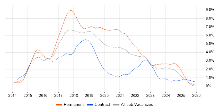 The table below provides summary statistics and salary benchmarking for jobs advertised in South Wales requiring AngularJS skills. It covers permanent job vacancies from the 6 months leading up to 11 January 2026, with comparisons to the same periods in the previous two years.