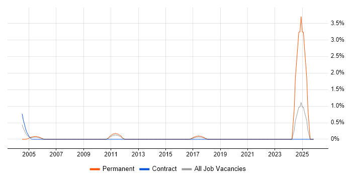 Historical trend showing the proportion of permanent IT job postings citing ISO/IEC 27002 (supersedes ISO/IEC 17799) relative to all permanent IT jobs advertised in Suffolk.