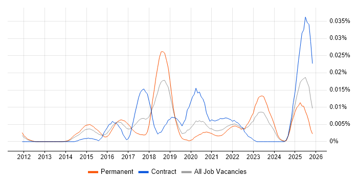 Historical trend showing the proportion of permanent IT job postings citing Cyber Threat Analysis relative to all permanent IT jobs advertised in the UK excluding London.